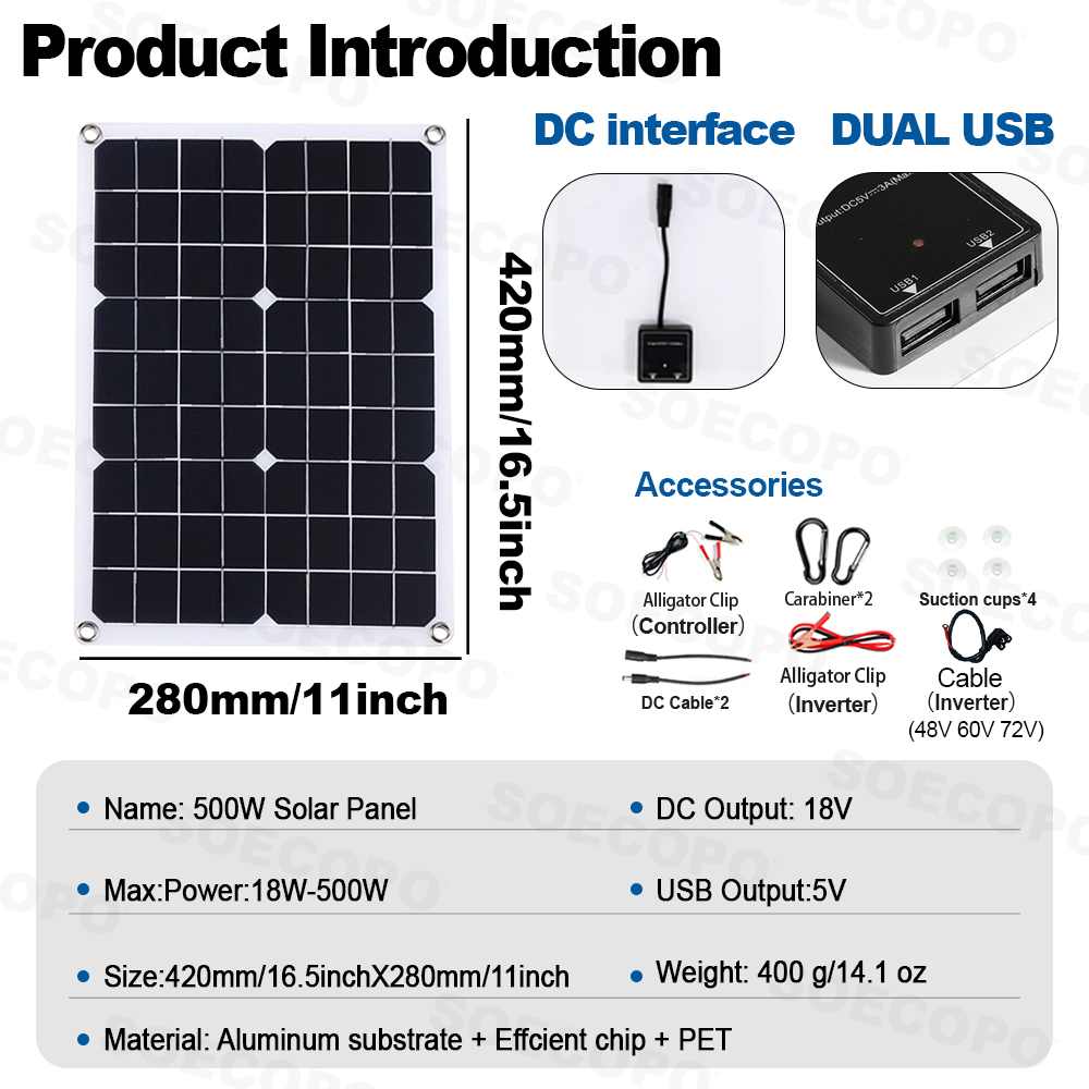 🔋 Maximum power: 20W-500W