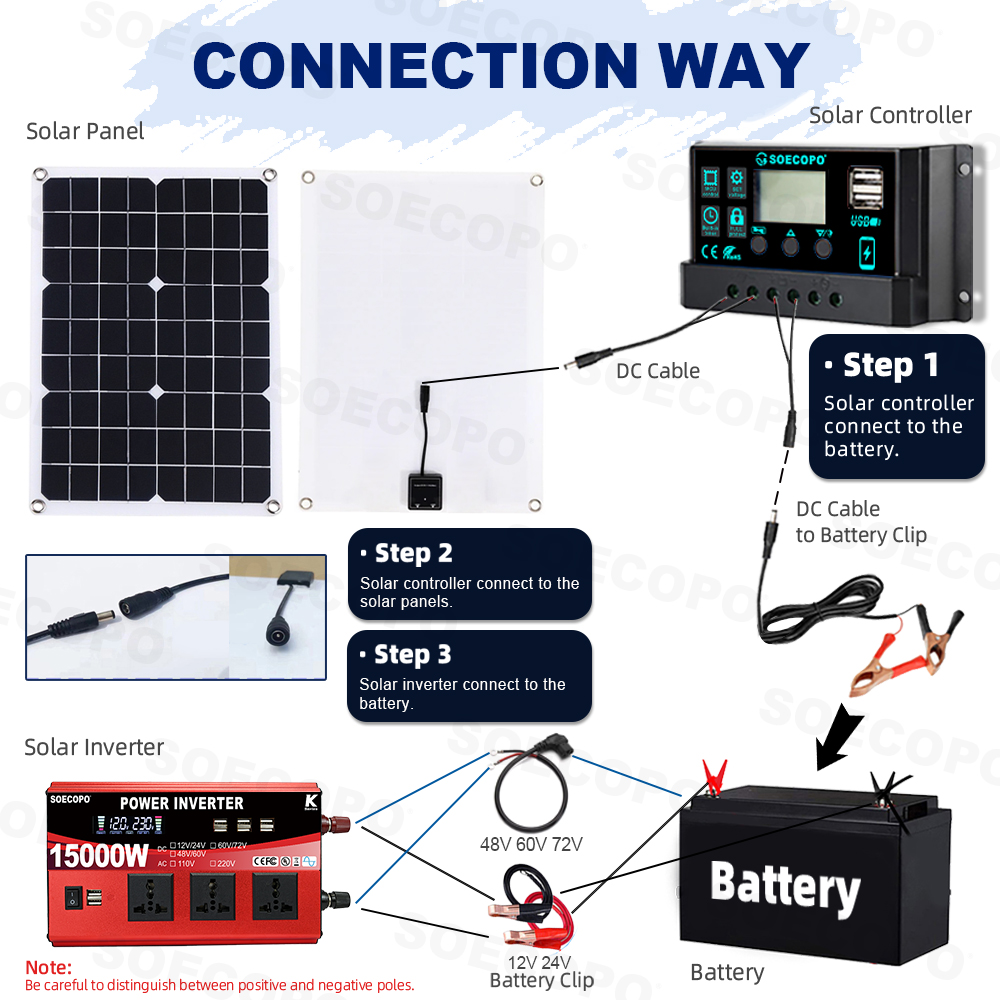 🔧 Installation guide: Please refer to the manual for detailed connection steps between the solar panel and the controller. Follow the diagram for more secure operation!