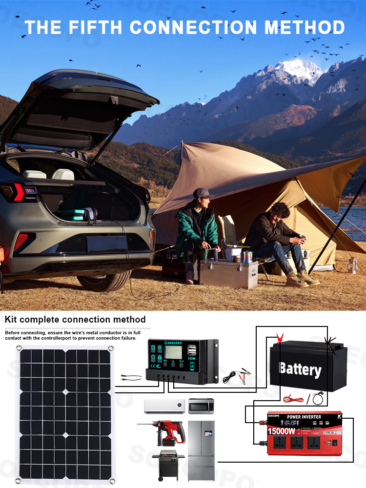 🔗 Connection operation: Connect the solar panel to the controller, then connect the light bulb or mobile phone