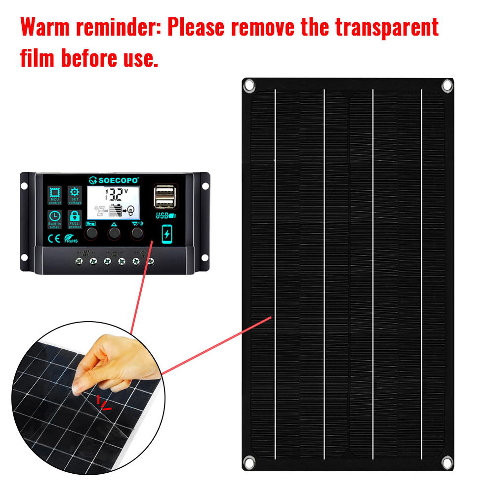 1.Remove the transparent film on the panel surface before use (otherwise it will affect power generation).