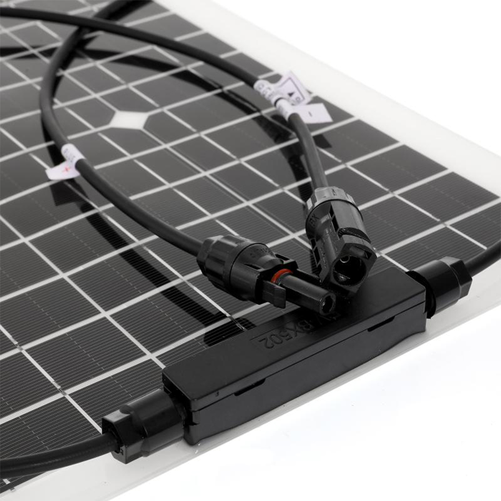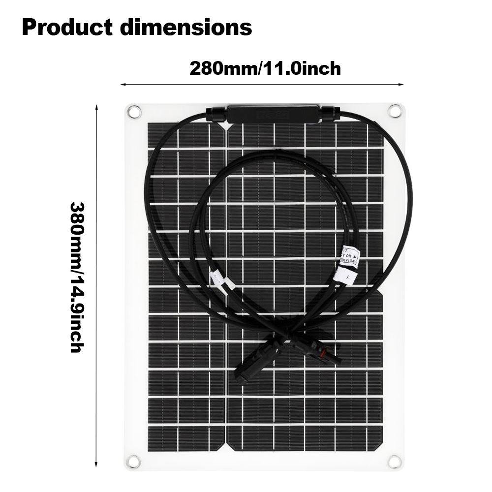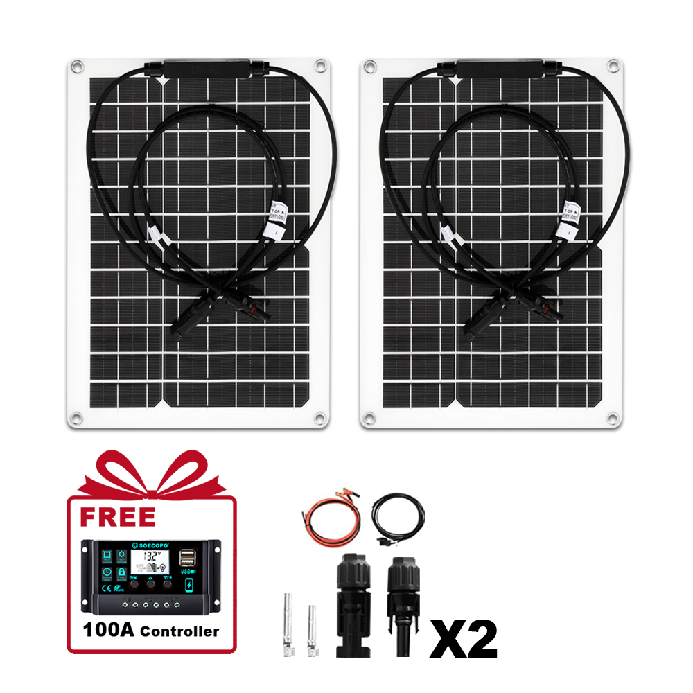 This kit includes 2 x 15W high-efficiency solar panels (total 30W), a 30A-100A intelligent solar controller, and a full set of accessories (Y-cable for parallel connection, MC-4 connectors ×2, mounting screws/suction cups). It features a 30° flexible design (ETFE material) that fits perfectly on curved RV roofs, boat decks, or tent tops. With 22% conversion efficiency (high-efficiency monocrystalline silicon chips), it generates stable power even in low light (cloudy days, dusk), meeting high-power demands for RV air conditioners, home refrigerators, and outdoor devices.