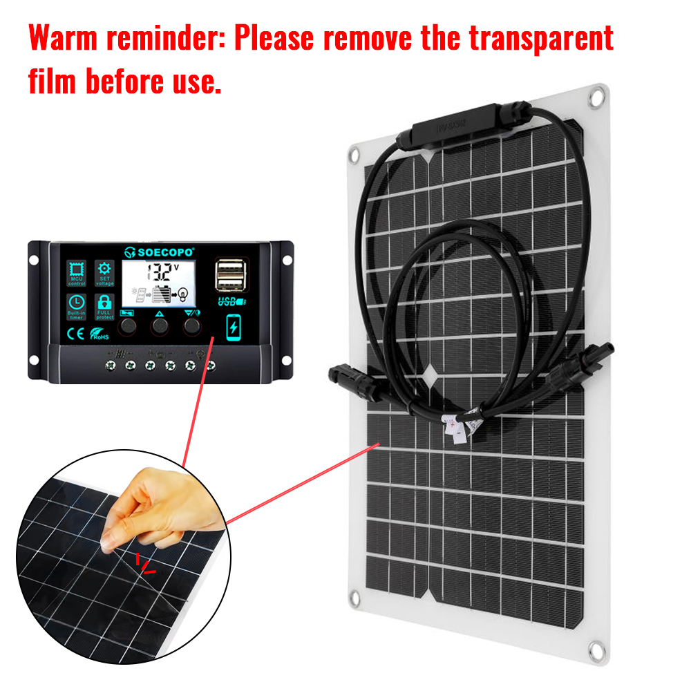 1.Remove the transparent film on the panel surface before use (otherwise it will affect power generation).