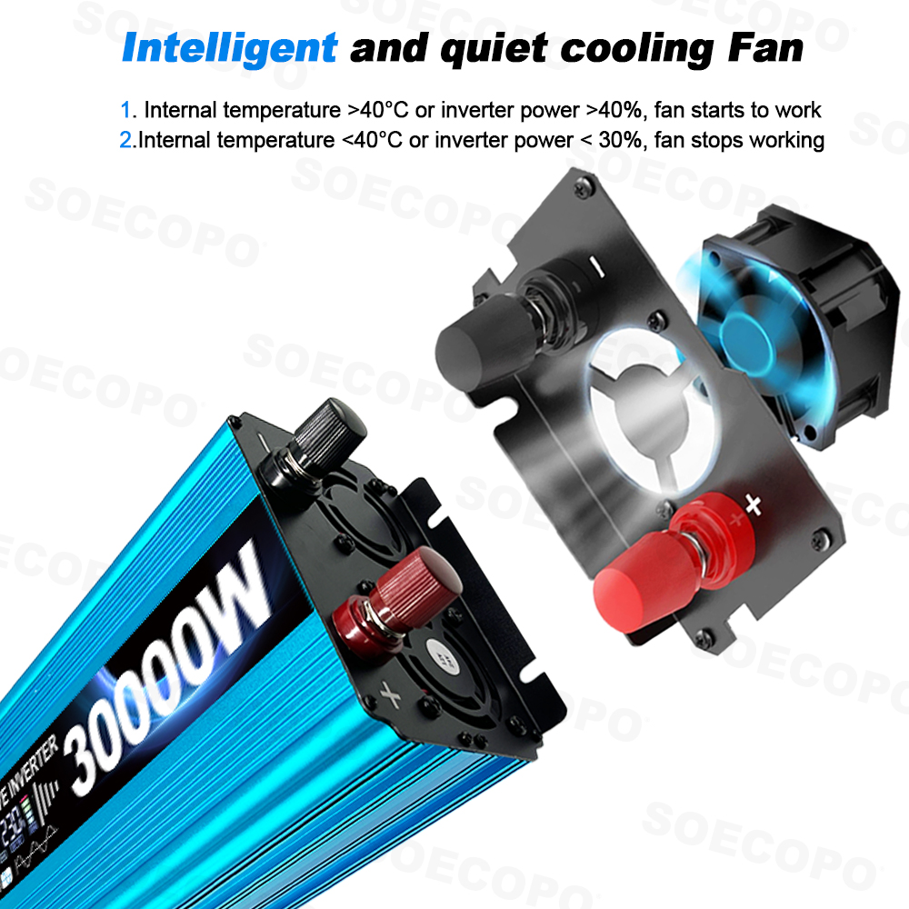 📉 Load limit: The total load should not exceed 3000W,When using a single high-power appliance, its continuous operating power should also be ≤ 3000W (for safety reasons, allow 10% buffer space).