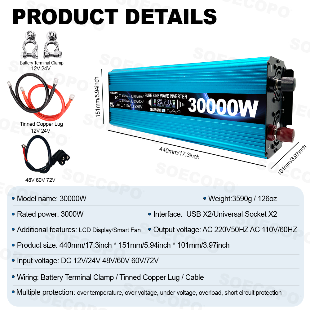 🔥 30000W Pure Sine Wave Dual Voltage Inverter 🔥