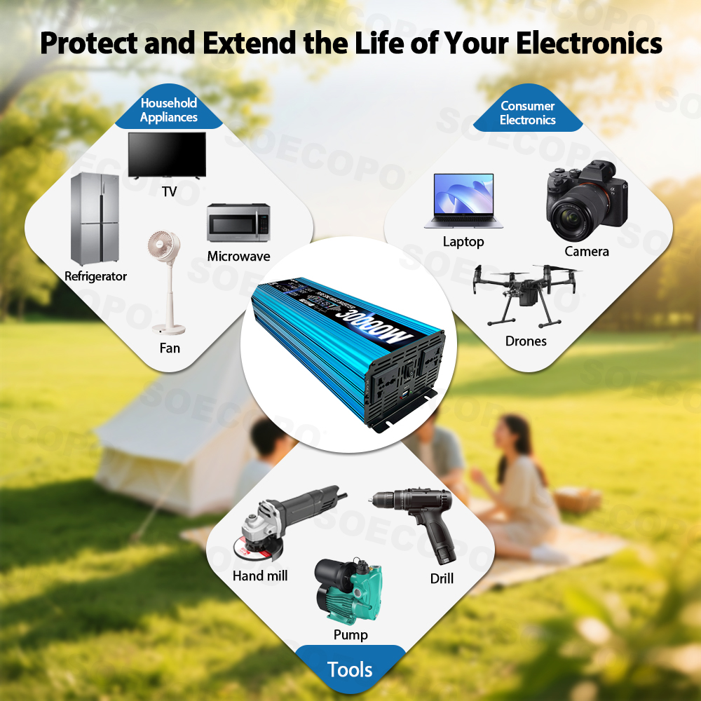 ✅ Pure sine wave output 🔄: The waveform is close to the mains power, protecting the computer 💻、 camera 📷 Waiting for precision equipment to extend lifespan ✨。